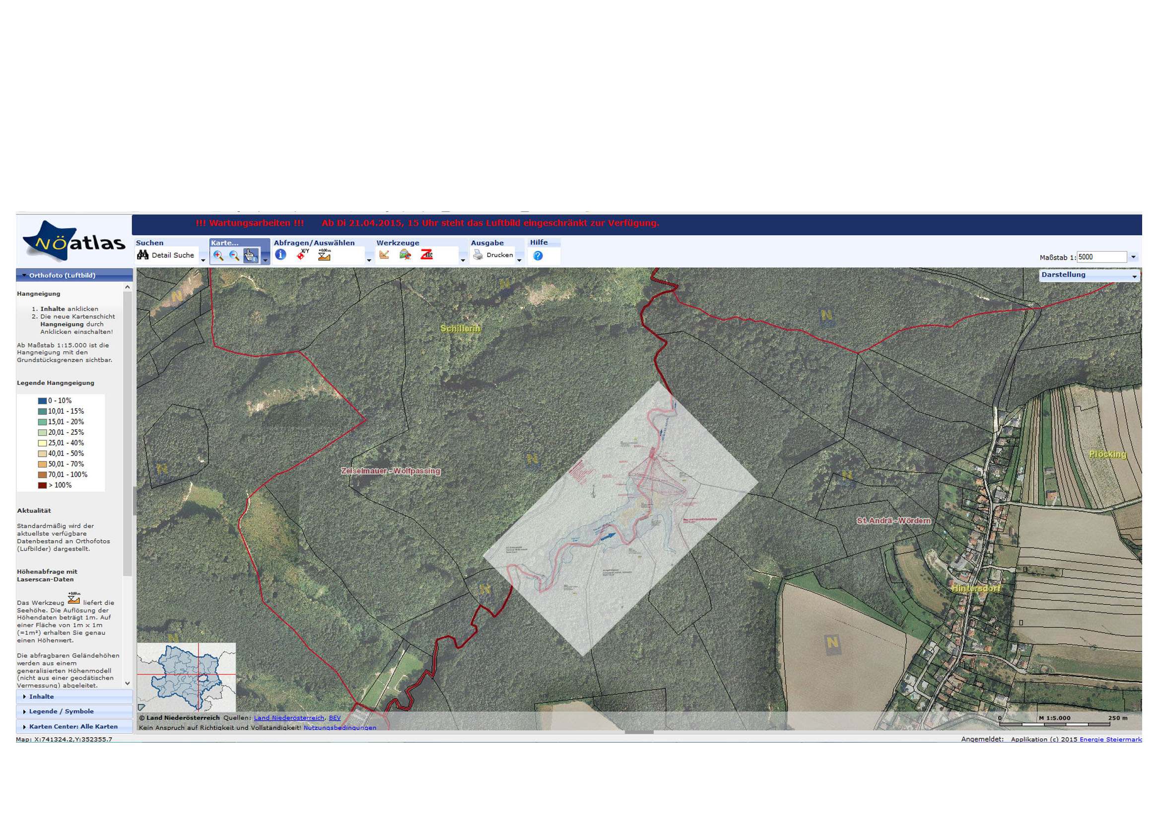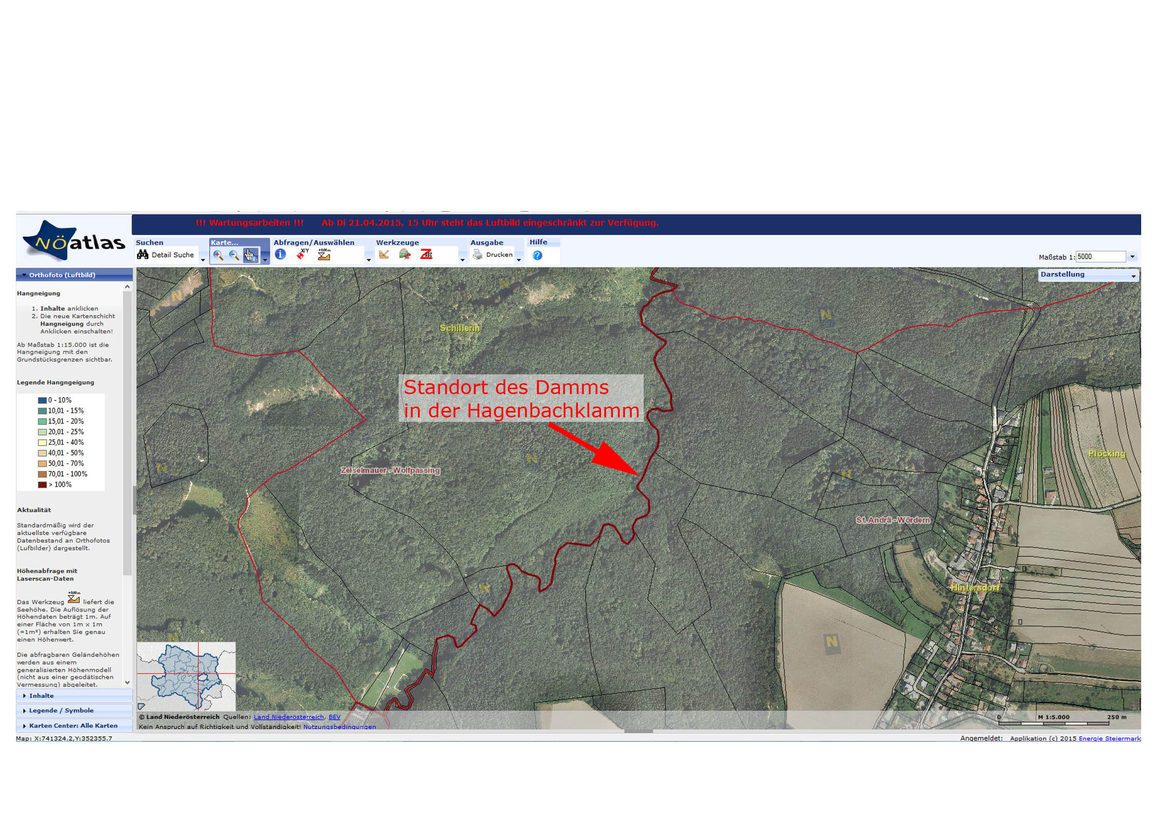 Standort des geplanten Damms in der Hagenbachklamm (Luftbild)